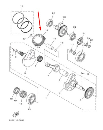Поршень квадроцикла Yamaha Grizzly Kodiak 2016+ STD 2MB-E1631-00-00 2MB-E163...